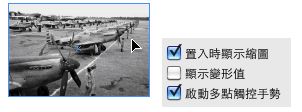 縮放物件時,對於物件的縮放比例的顯示方式有兩種設定。一為「套用至內容」,一則為「調整縮放百分比」。